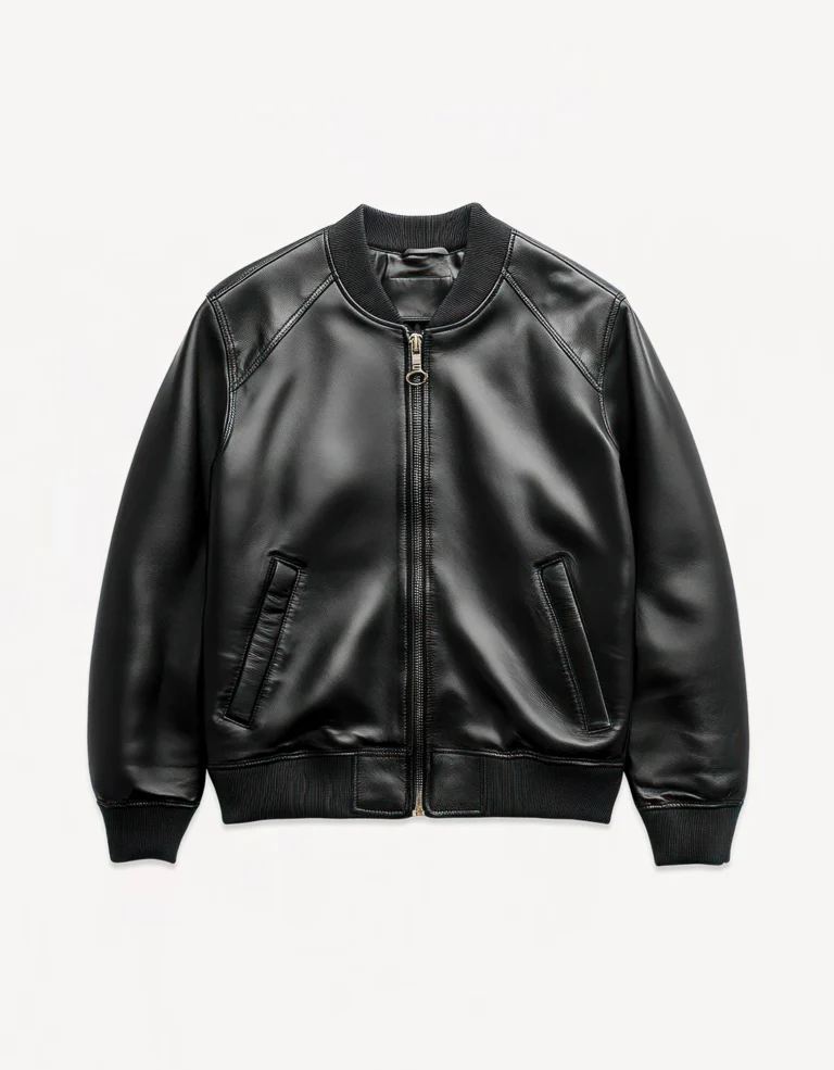 This bomber jacket combines a sleek zip-up design with ribbed cuffs and hem for a structured yet comfortable fit. Ideal for casual wear, it adds a modern touch to any outfit while ensuring warmth and versatility.